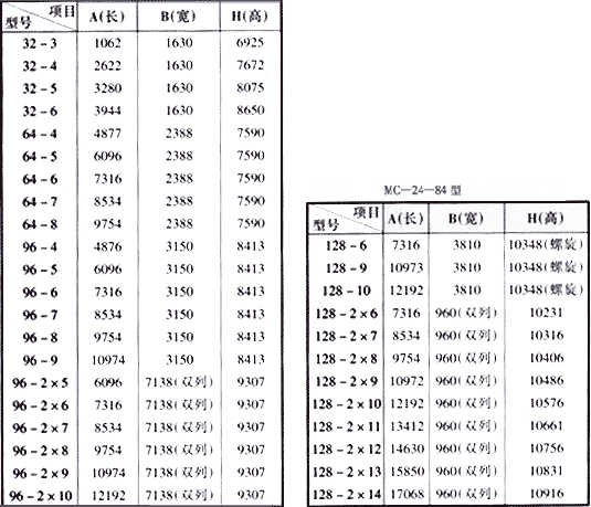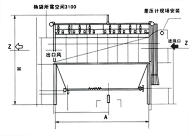 氣箱脈沖除塵器主要尺寸:
